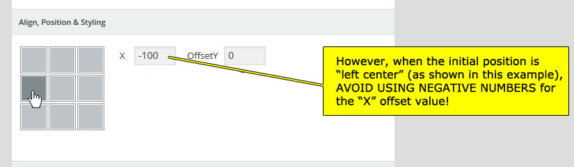 - Left Arrow Horizontal Offset: The Offset position of the navigation depending on the aligned position. from -1000 to +1000 any value in px. i.e. -30 Each Arrow independent.