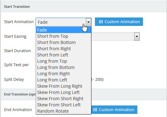 - Start Animation: The transition type for when the layer first animates into view. Default options: