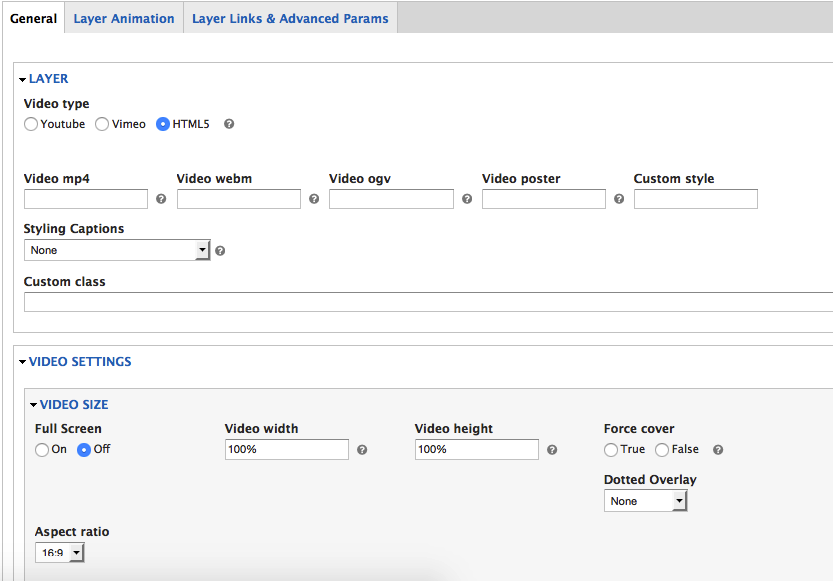 - Cover: Make the video cover the entire size of the slider (similar to the Background Fit -> Cover setting for a slide's main background image).